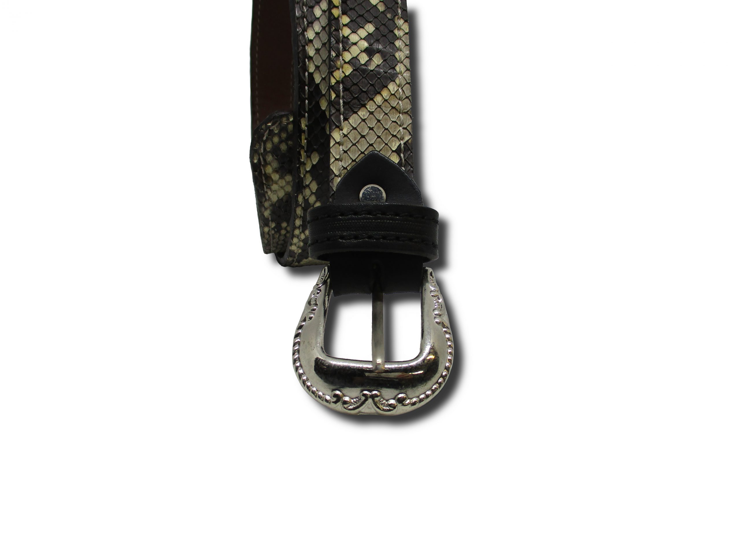 Cintura per pantaloni in cuoio e vero pitone.