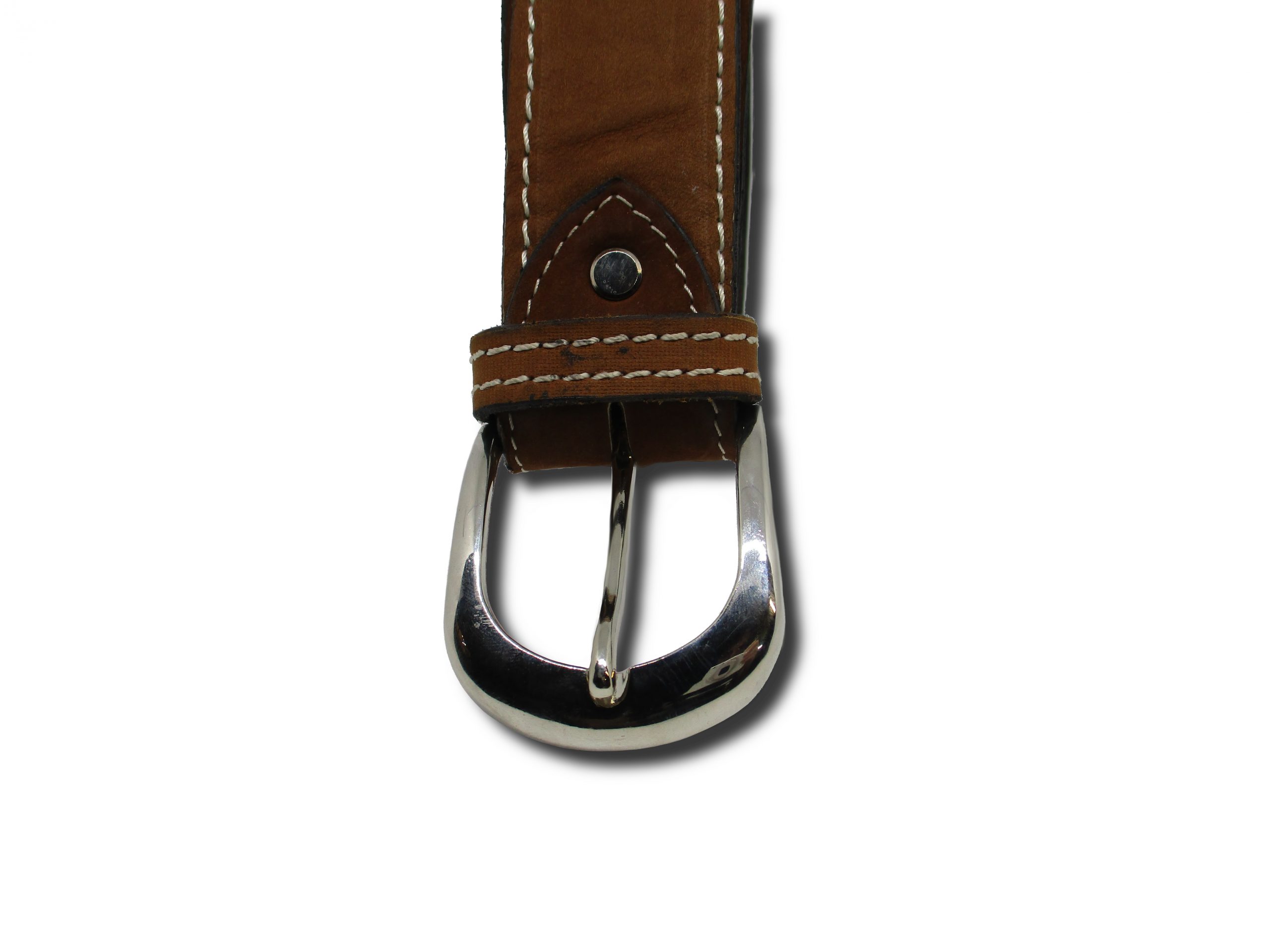 Cintura per pantaloni in cuoio marrone con fibbia smontabile.