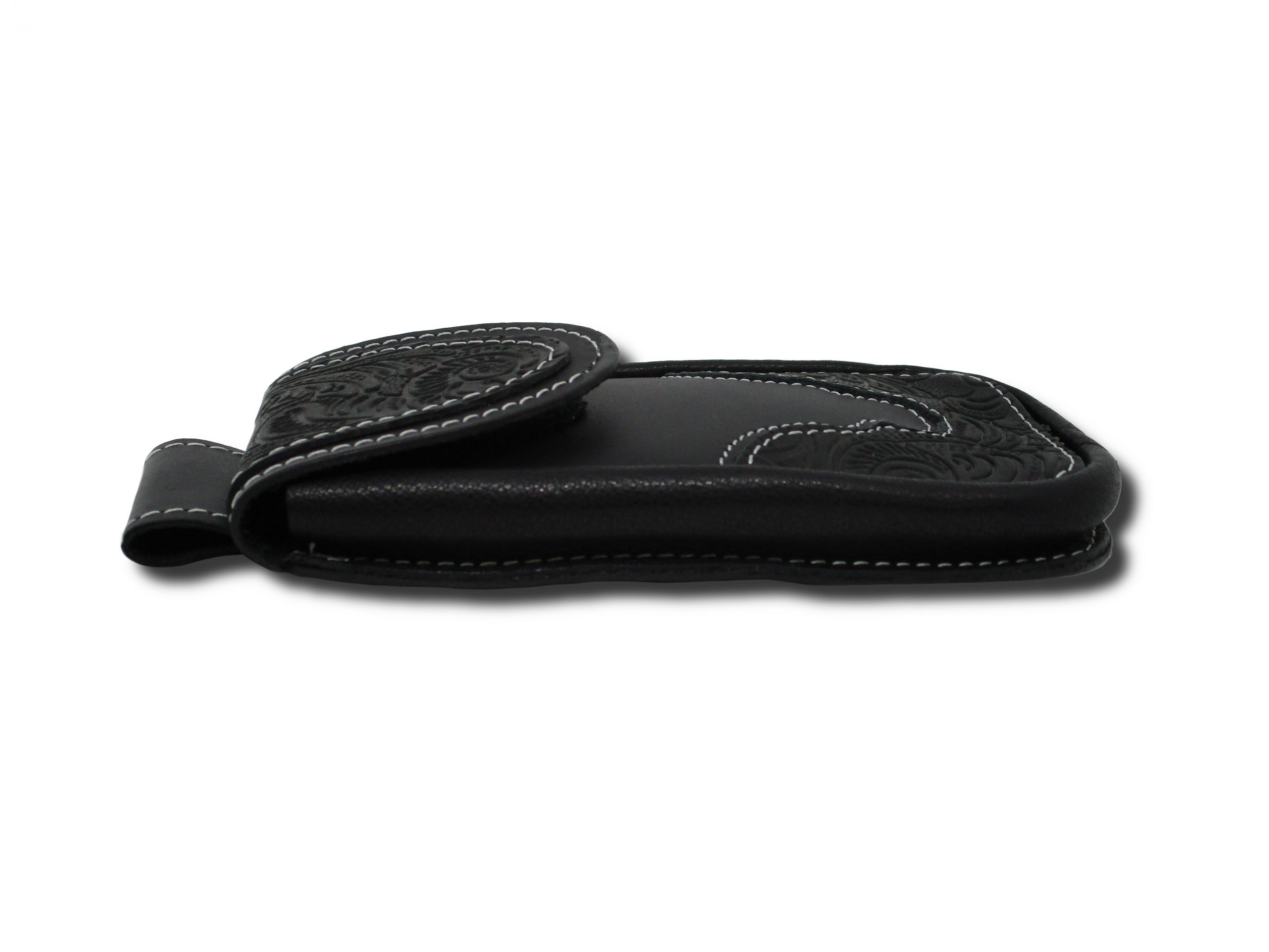 Porta cellulare da cintura in pelle con motivo a fiori stampato.
