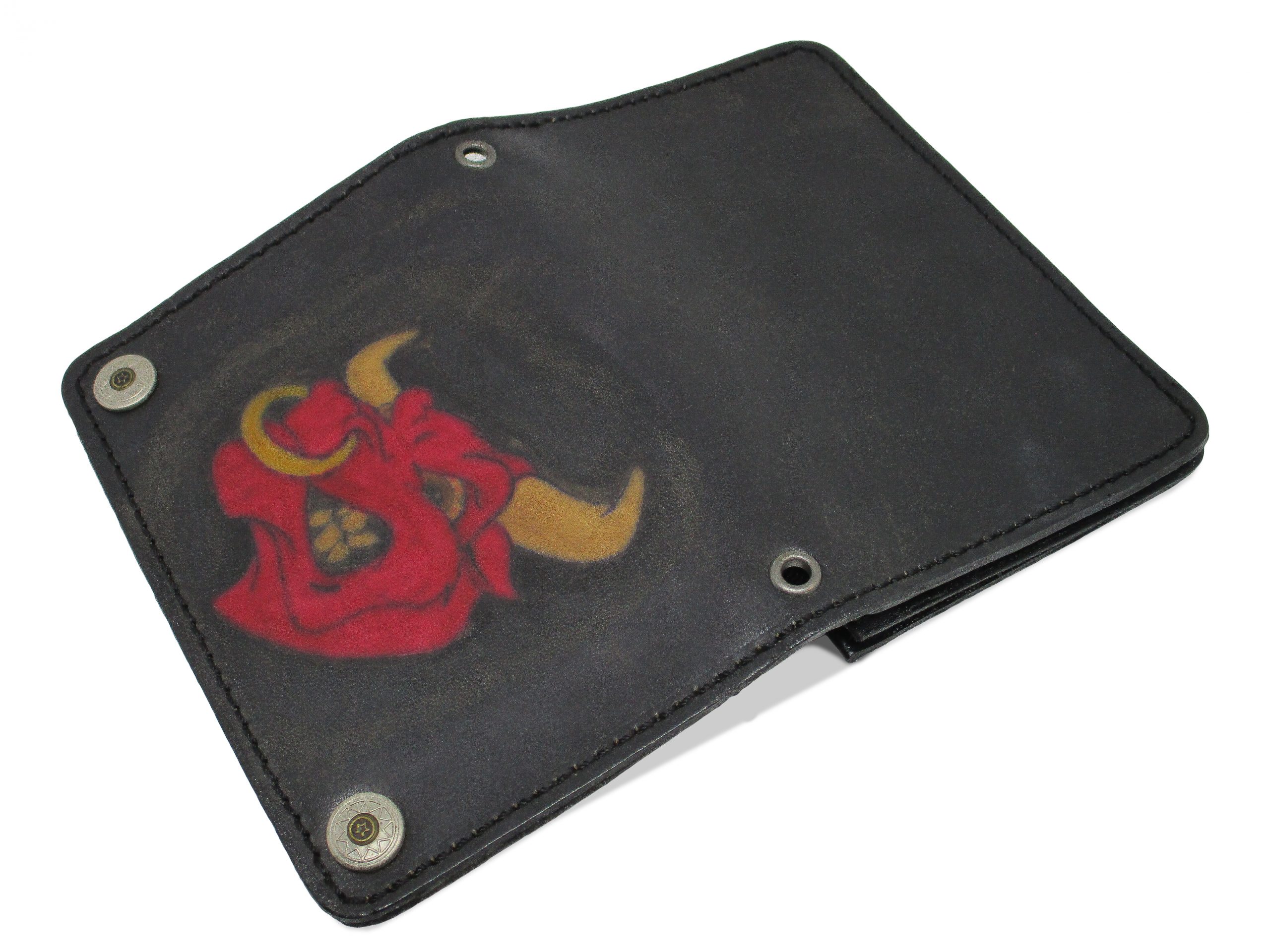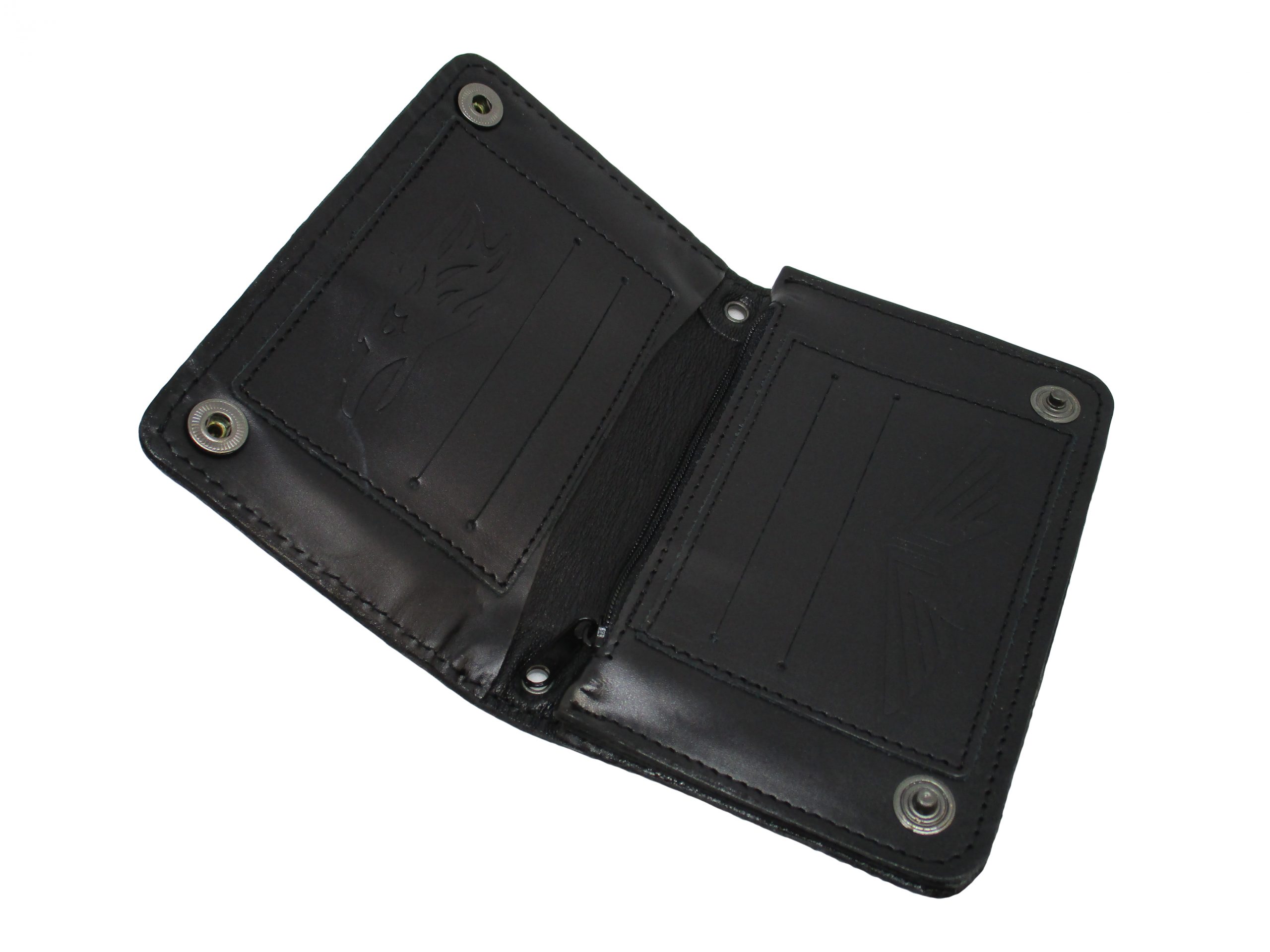 Portafogli a libro con bottoni completamente in cuoio nero.